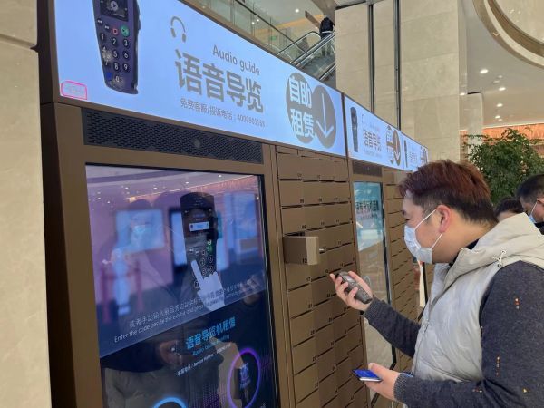 观众在省博新馆大厅用手机扫码租借语音导览设备。记者万建辉 摄