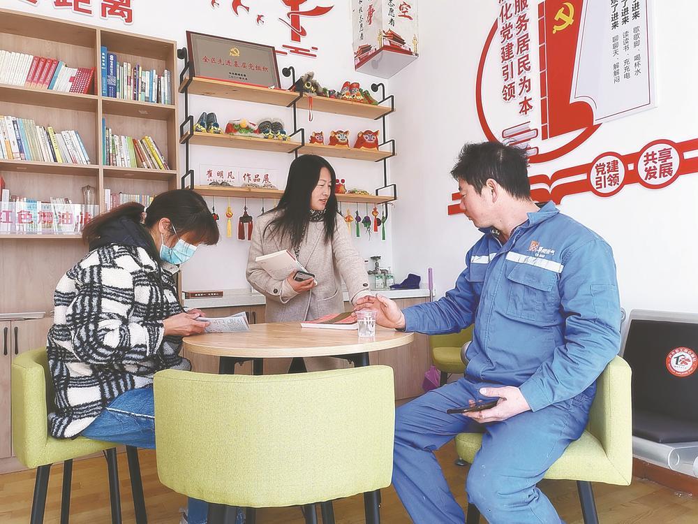 日前,在马王庙社区户外职工爱心驿站,华润燃气工作人员在驿站休息,同时还有2名家长在驿站看书等待孩子放学。他们表示,爱心驿站为大家提供了休息场所,传递出人文关怀,感觉很温暖。 通讯员 龚会 摄