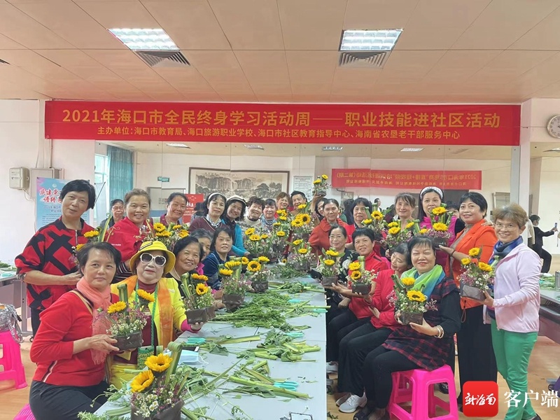 此外,2021年的全民终身学习活动中开展的职业技能进社区,覆盖海口四个区共16个城乡社区,分别举办插花艺术、面点制作、美容美发、书法鉴赏、巾帼学堂等培训课程共25场,受惠群众达到千余人次;