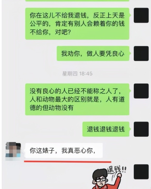 在小程父母提供的微信截图中,双方互有争吵,任某还带有辱骂性的语言,小程也发微信回击“无良房东退钱”,她给任某打电话,对方不接。