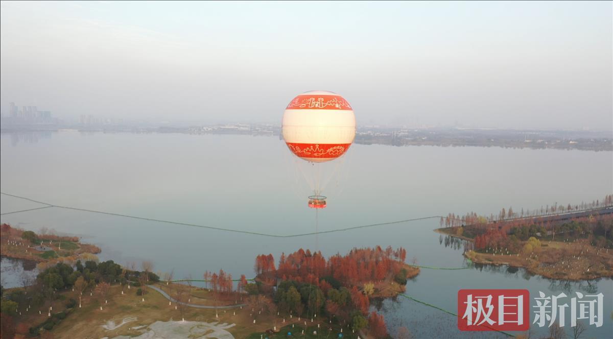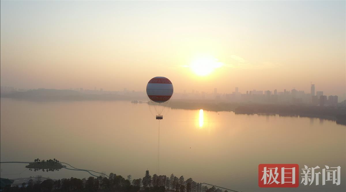 东湖观光氦气球由武汉旅游体育集团旗下的东湖文旅集团打造,系华中地区首个空中旅游观光氦气球,集观光、游览、休闲、科普功能于一体。东湖文旅集团负责人表示,东湖观光氦气球直径23米,球体达6000立方米,可同时容纳30人乘坐,垂直升空最高为150米,最大的特点是安全、可靠、环保,取代了安全系数低的热气球,成为新型空中观景项目。东湖观光氦气球将于2022年初正式接待游客,游客可以在大美东湖感受“水陆空”全新体验。