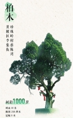 6、黄陂区李集街珍珠岭村蔡陈湾,柏木,1000岁,树高10米,胸围280厘米,冠幅8米。