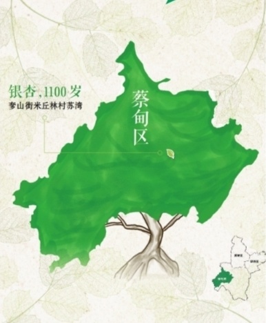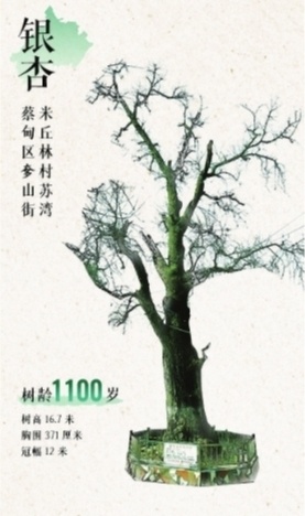 3、蔡甸区奓山街米丘林村苏湾,银杏,1100岁,树高16.7米,胸围371厘米,冠幅12米。