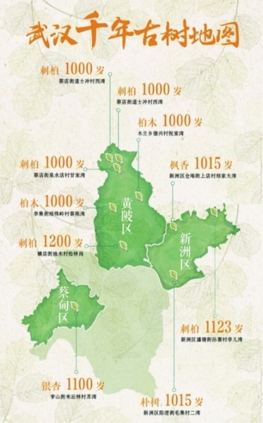 武汉晚报讯(记者杨晓雨 通讯员何明华)古树是一座城市的宝贵财富。它们穿越百年甚至千年,历经沧桑,依然坚强屹立,承载着城市的厚重历史和乡愁。武汉一共有10株千岁以上古树,分布在黄陂、新洲、蔡甸三个新城区。