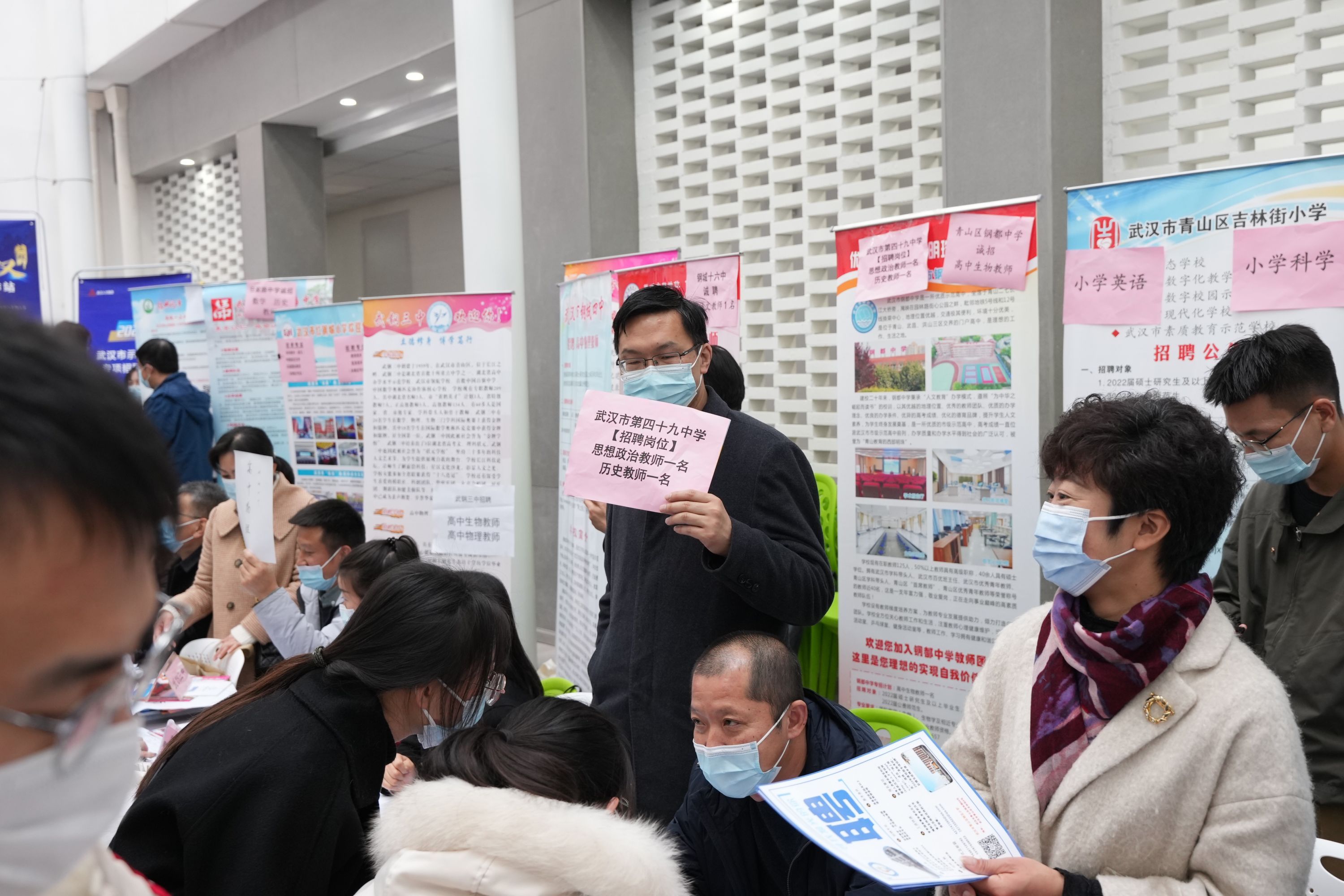 “这次活动是我们今年第一次举办专项招聘呢!今天我们提供的岗位是语文老师两个、数学老师两个、英语老师一个,都是有编制的岗位。今天的宣讲会活动主要是给学生们一个了解我们的机会,通过这次宣传让学生们踊跃报名,来我们学校就职。”武汉市第十一中学副校长苏敏对记者说。