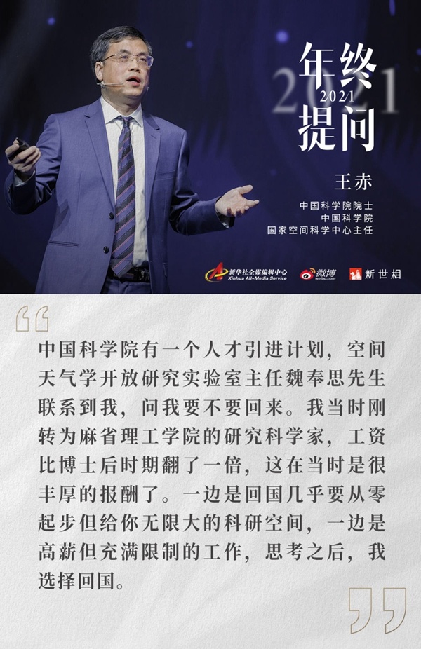 在我看来,个人的成就和整个国家在这一领域的发展是密切相关的,这个领域整体不好,你个人的发展也好不到哪去。如今20年过去了,再回头看,我当时的确是做了一个非常正确的决定。我赶上了一个伟大的时代,能将个人的发展融入到我们国家空间科学事业的快速发展中,共同进步,我感到非常幸运,也非常自豪。