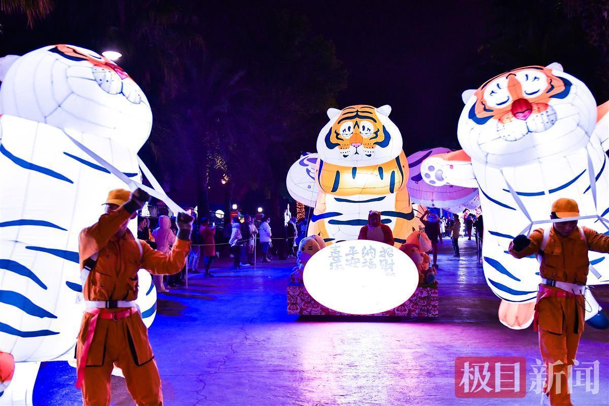 今年的灯光节引入了时下火爆表情包IP打造“我不是胖虎”。极目新闻记者看到,在武汉欢乐谷广场,摆放着巨型胖虎灯光组“XXL好运招财虎”,成为必打卡项目。走进园区,浓郁的虎年氛围扑面而来,各种神态、表情迥异的胖虎随处可见,趣萌可爱。