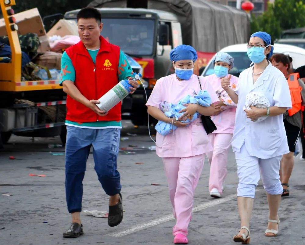 7月26日,受连日强降雨影响,河南省卫辉市新乡医学院第一附属医院被洪水围困。救援人员、医护人员、志愿者与时间赛跑,全力解救被困病患。