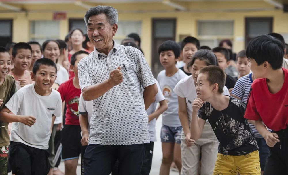 年近七旬的马维帅(前)坚守校园,呵护着留守儿童的童年。