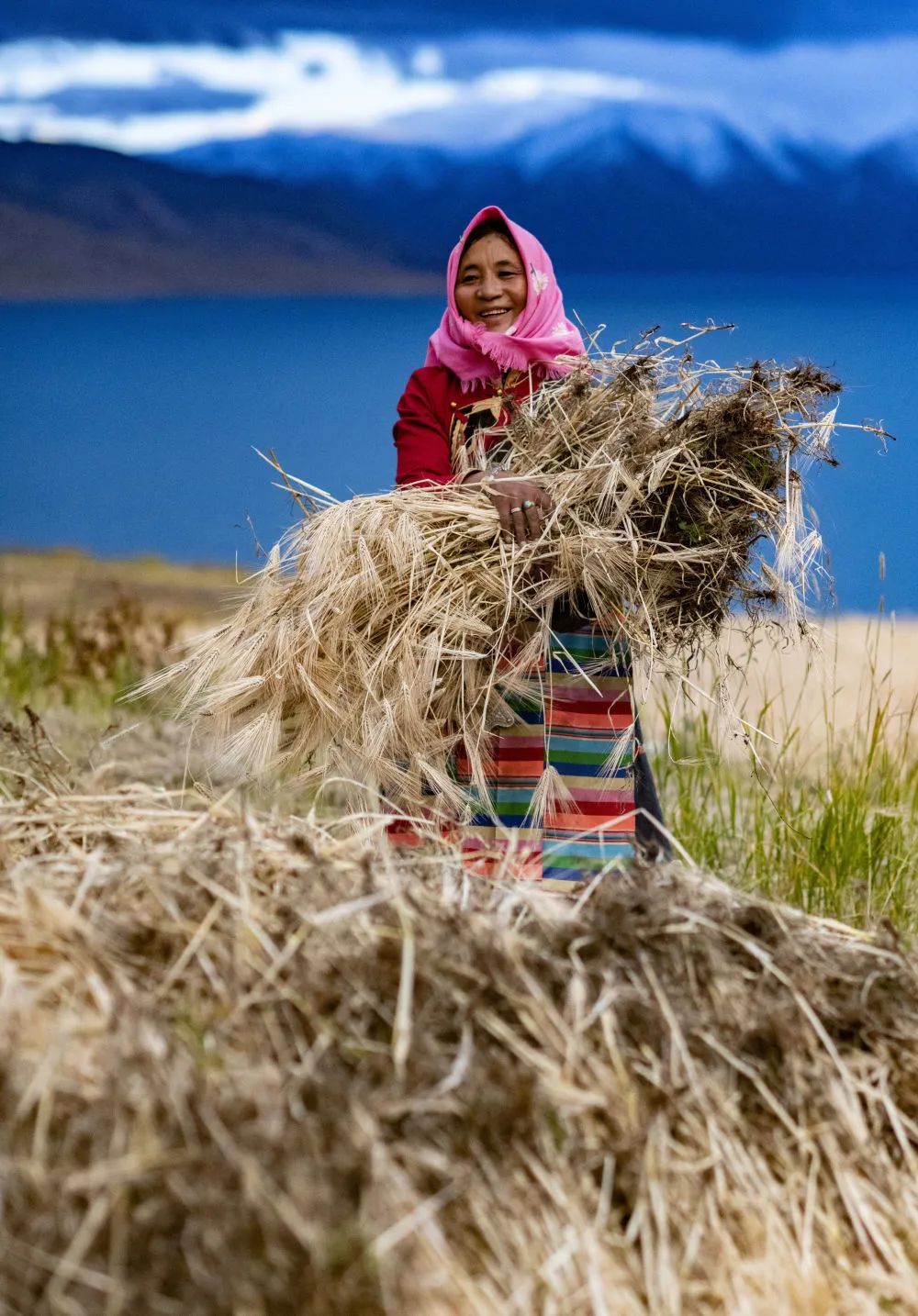 在以牧区为主的藏北,村民开镰收割农田里的青稞。