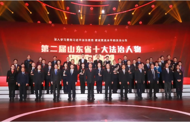12月24日,第二届“山东省十大法治人物”颁奖典礼在山东广播电视台举行。山东省委常委、政法委书记、省委依法治省办主任林峰海,省人大常委会党组成员、副主任齐涛,副省长、省公安厅党委书记、厅长范华平,山东省高级人民法院党组书记、院长张甲天,山东省人民检察院党组书记、检察长陈勇,省政协副主席、民盟山东省委主委王修林,省委政法委分管日常工作的副书记、省委依法治省办副主任孙成良,省委依法治省办副主任、省司法厅党委书记、厅长王玉君,省委宣传部副部长孔繁轲,山东广播电视台党委书记、台长吕芃出席颁奖典礼并为第二届“山东省十大法治人物”颁奖。省委政法委副书记、省委依法治省办成员梁战光,省委政研室副主任王玉河,省人大常委会法工委副主任王仲泉,省政府副秘书长王贞军,省委依法治省办成员、省司法厅一级巡视员迟丽华,省委依法治省办成员、省司法厅党委副书记、副厅长、省监狱局党委书记、局长吴磊为“第二届山东省十大法治人物提名奖”获得者颁奖。
