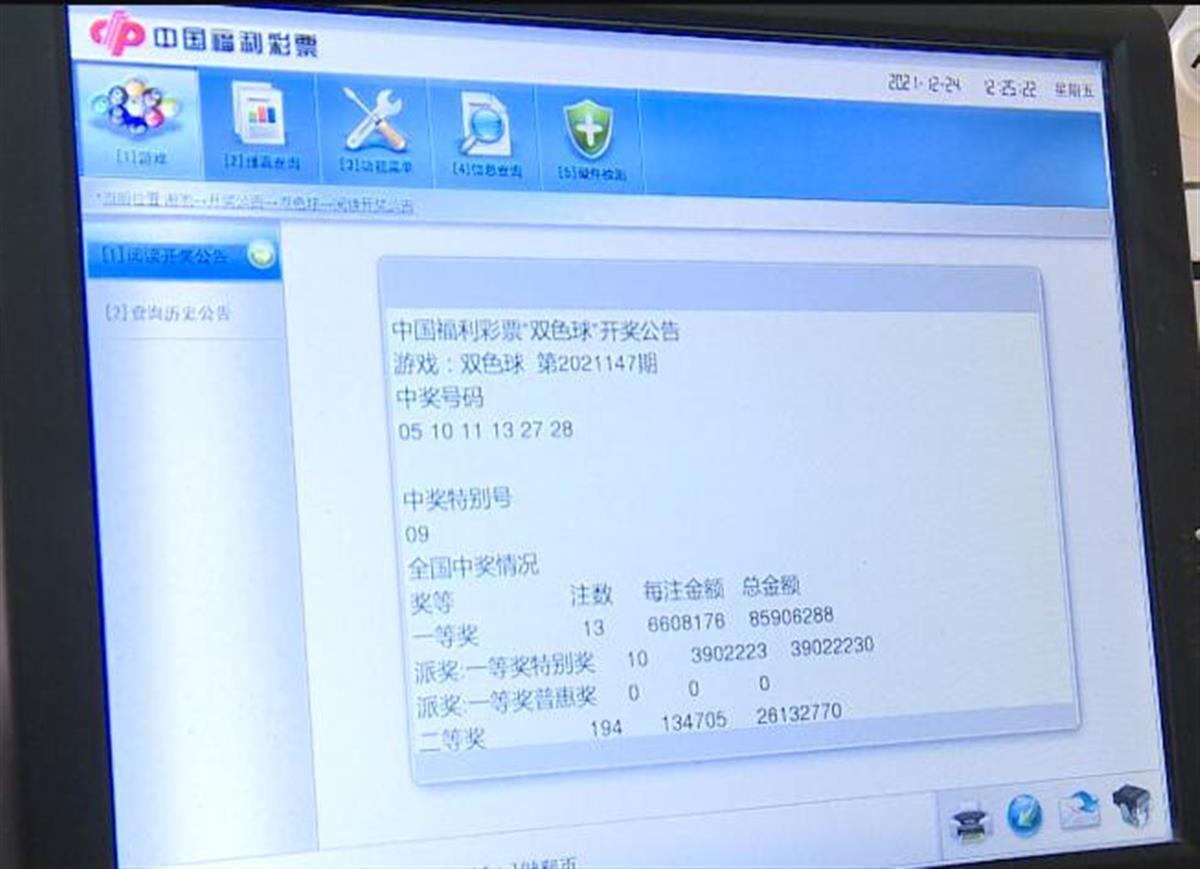 根据12月23日晚开奖的第2021147期福彩彩票“双色球”的中奖结果,一等奖的中奖号码为:红球号码为05、10、11、13、27、28,蓝球号码为09,而这个结果全国共开出13注,每注奖金为6608176元。