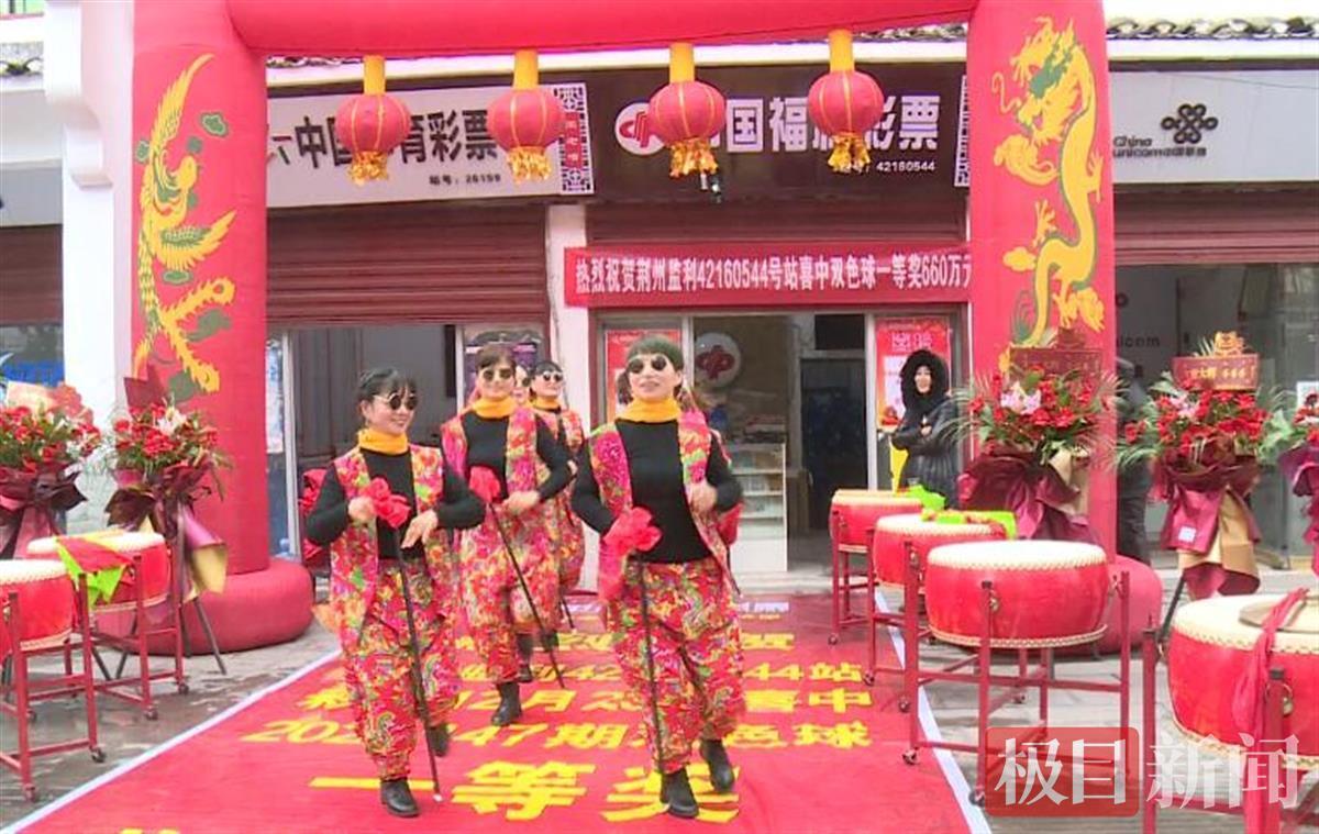 “喜报,一等奖660万!”12月24日,位于湖北荆州监利市周老嘴镇的中国福利彩票42160544投注站门口锣鼓喧天,腰鼓队载歌载舞庆祝中大奖。