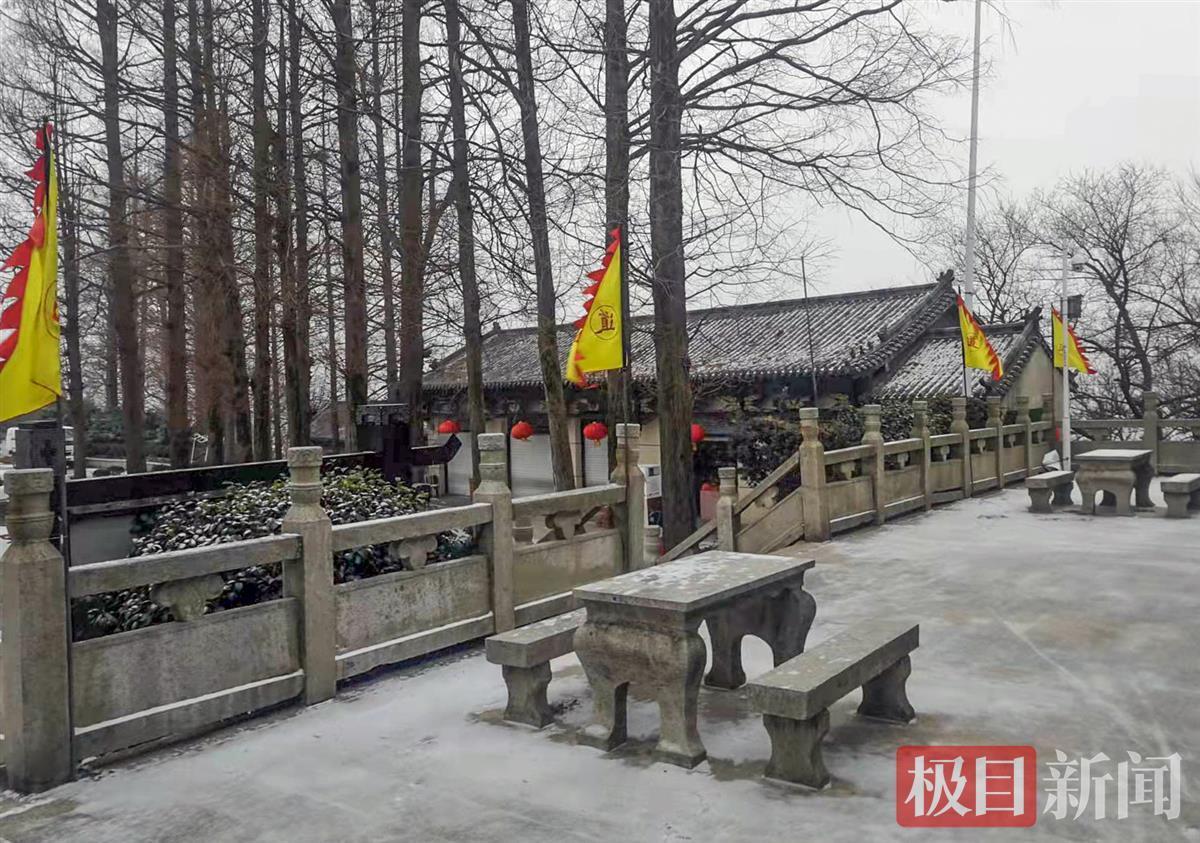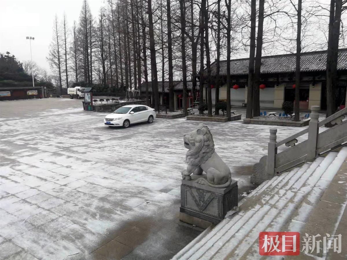 12月25日,上午9点多,武汉地标木兰山飘起了雪,很快上山的路行车就有点打滑。