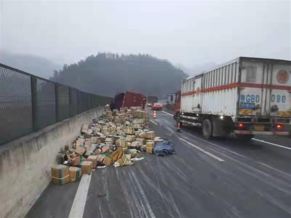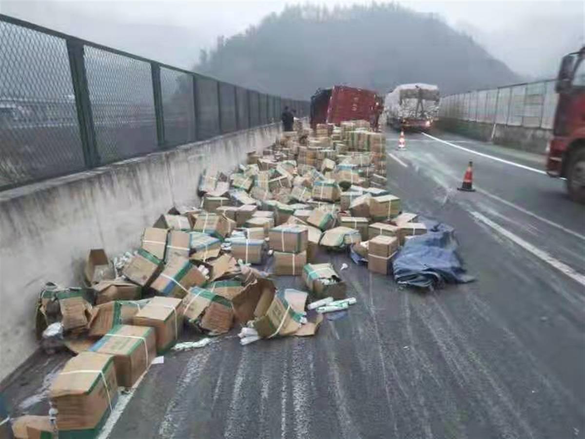 当时,湖北交投鄂西北运营公司第二巡检办负责人周粤接到电话后,立即带人赶赴现场。现场气温接近零度,冷风吹脸像刀割一样。巡检办人员与高警、路政人员一道顾不上寒冷,立即开始勘验现场。只见一辆河南车牌的红色厢式货车侧翻在超车道,纸箱包装的货物铺满路面,几名男性在路上向过往车辆挥手求救,全然不顾可能发生的危险。见此情景,巡检人员立即制止了当事人的错误行为,并带领他们到安全区域。随后,该公司巡检人员迅速在来车方向设置锥桶,防止二次事故发生,并上报监控中心做好过往车辆提醒。