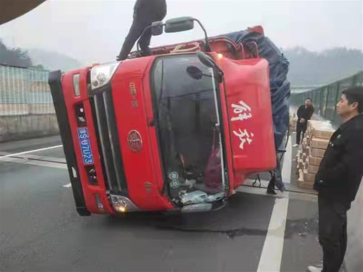 在进一步了解中得知,当事人姓王,其余两人为他的朋友,车辆所装物品为环保胶,价值三万多元,从四川成都上道,欲运送到河南南阳。“是我操作不当,造成了车辆侧翻,幸好没有人员伤亡、车辆也没损坏,更没有撞到护栏。”回想起刚才的事故,王先生心有余悸。
