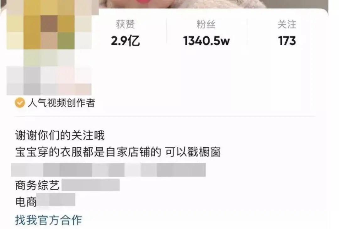 在一些儿童短视频账号主页,大多可以看到“好物推荐”“找我官方合作”等标识。有运营儿童短视频账号的家长表示,靠娃就能月入15万元。