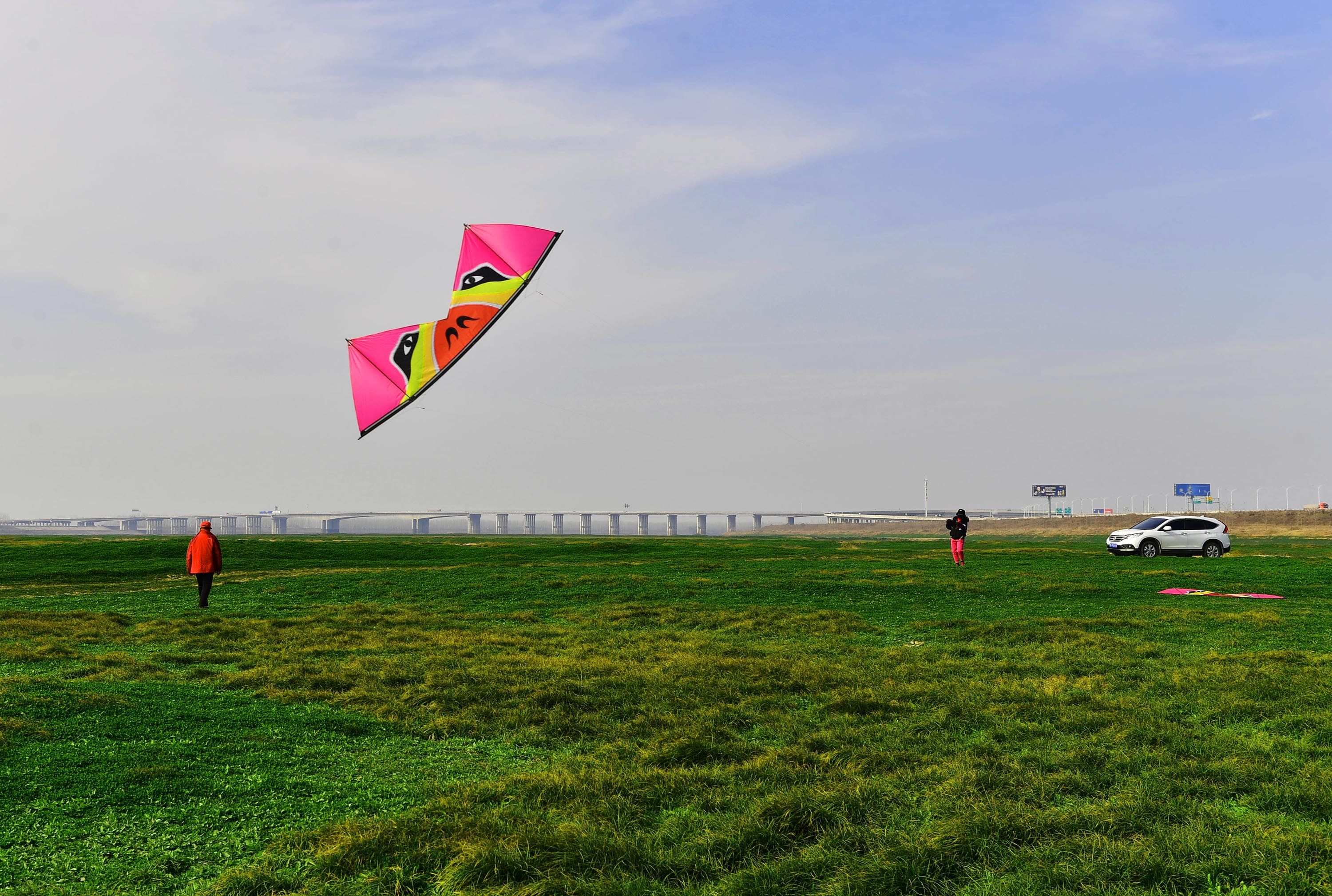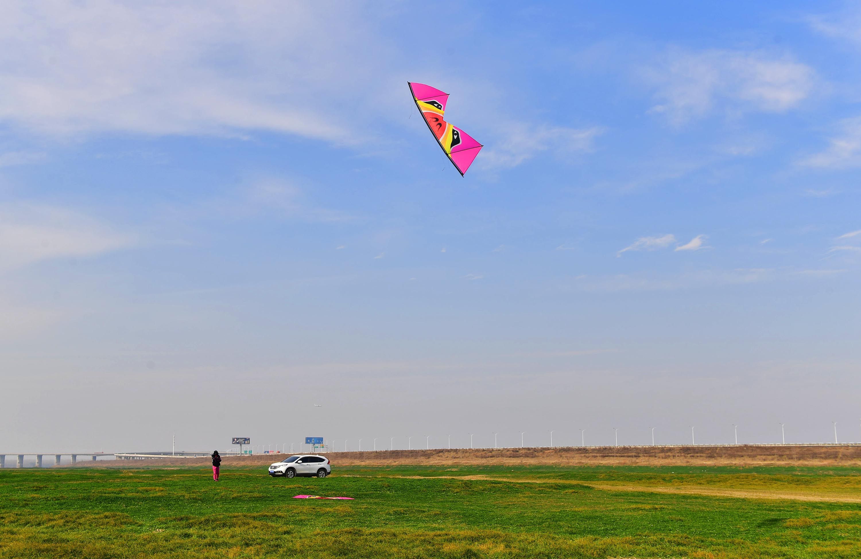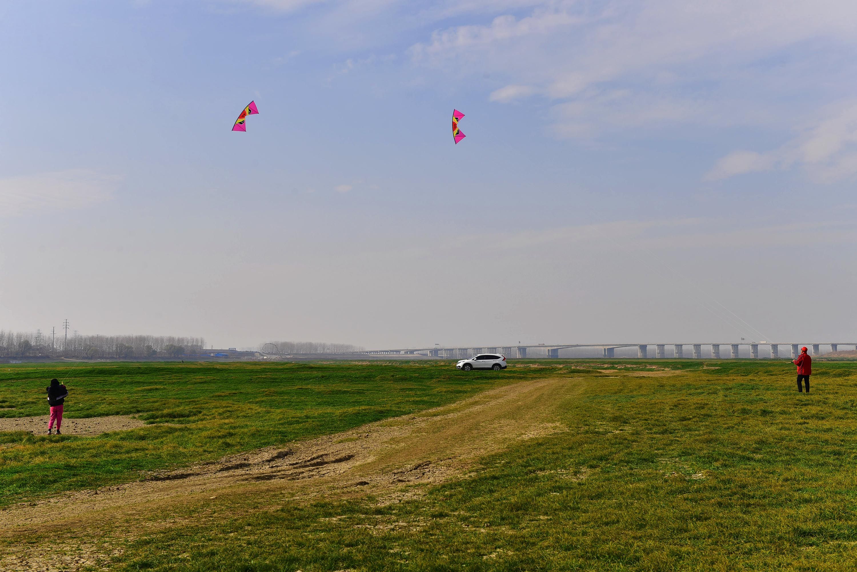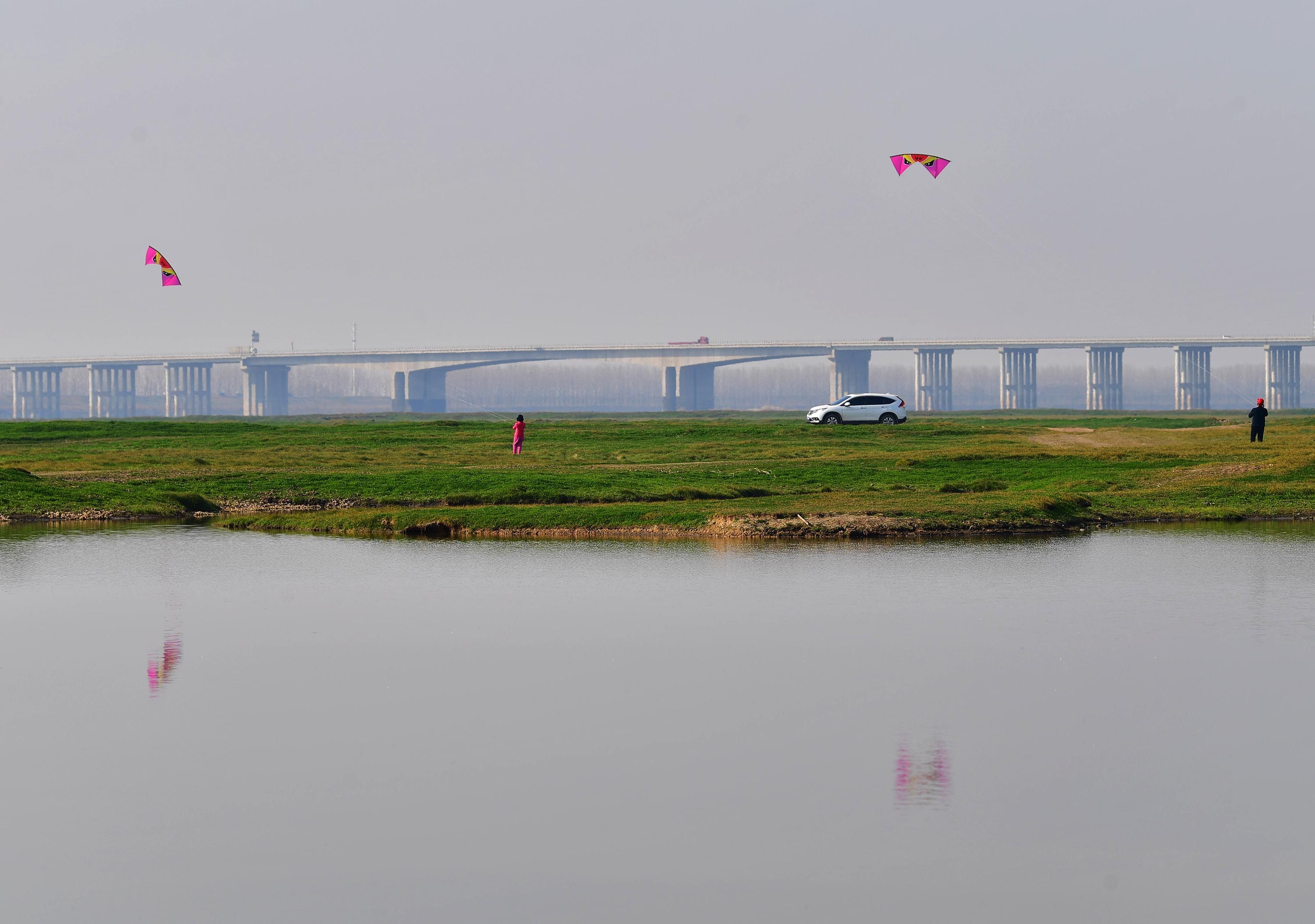 12月27日中午,阳光明媚,暖意融融。府河河滩上,两位市民在此放飞风筝,鲜艳的风筝如同成对的蝴蝶飞舞、嬉戏。