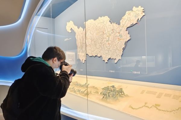 随着长江经济带上升为国家战略,长江文明进入黄金时代。现场通过文物史料、名家绘画,全景展示了新中国成立以来长江流域重大事件,包括修建武汉长江大桥让天堑变通途,三峡工程、葛洲坝等水电工程,长江流域生态环境保护……现场还展示了三峡大坝和三峡升船机的立体模型。