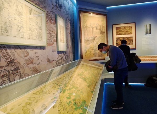 记者12月26日探访该文化展看到,展厅里有多幅古画长卷,相当一部分古画的长度超过10米,其中明清时期的《长江图》《长江万里图》《乾隆十六年南巡各地详图》《滇南盐井图》等多件文物,都是国家博物馆珍藏,近年来首次对公众展出。