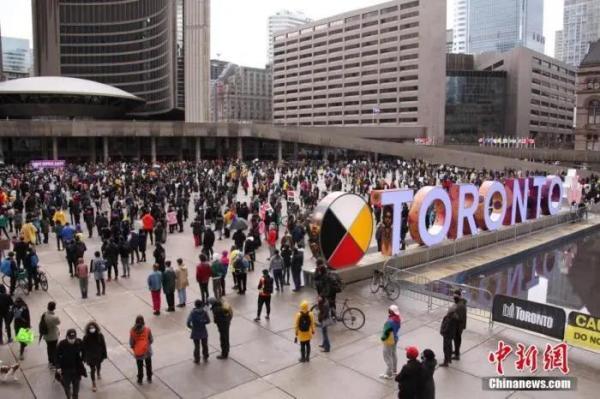 资料图:当地时间3月28日,来自不同族裔社区的数千人在加拿大多伦多市政厅前广场参与集会示威,反对种族主义、呼吁停止仇视亚裔。中新社记者 余瑞冬 摄