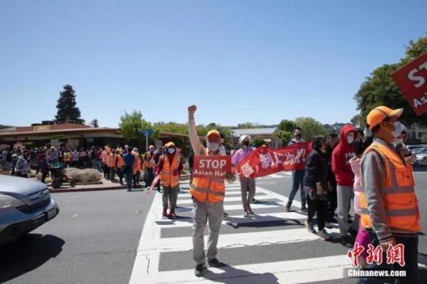 资料图:当地时间4月17日,数百人在美国旧金山湾区密尔布雷市参加反对歧视亚裔的集会。 中新社记者 刘关关 摄