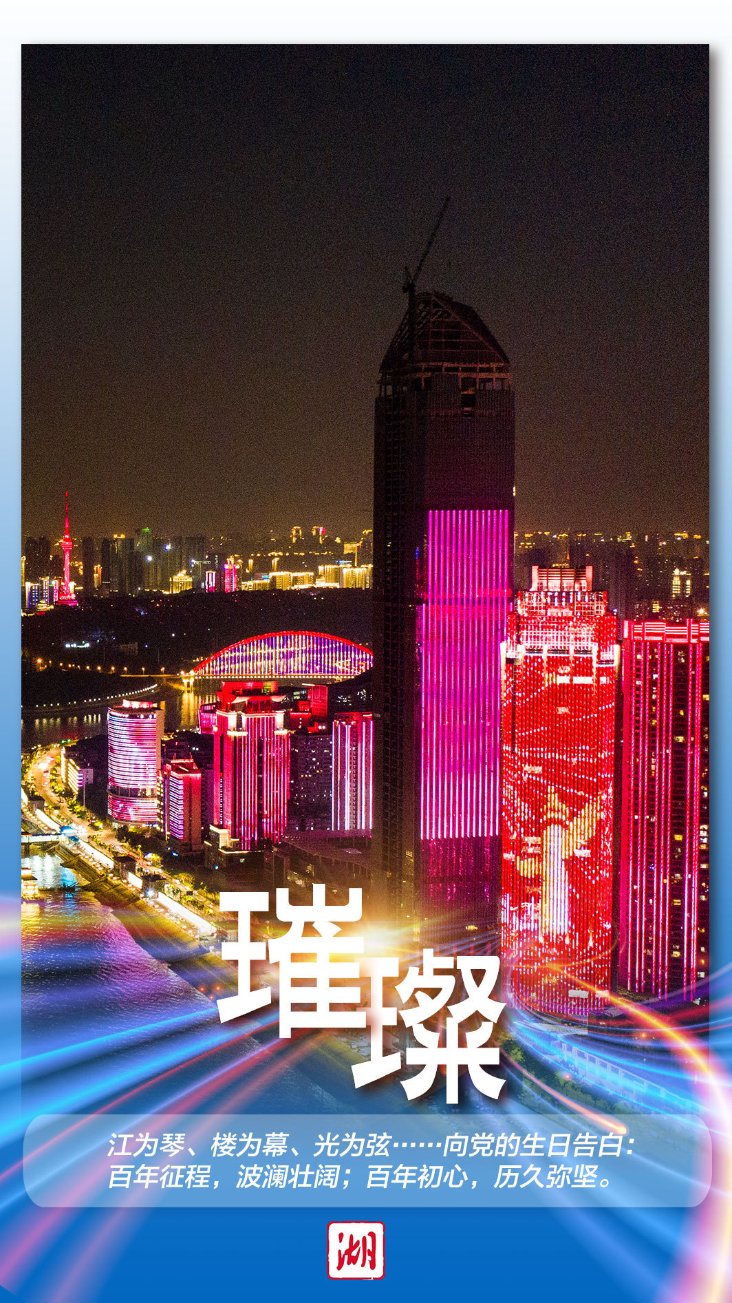 25公里的长江水岸线,铺陈着中国共产党百年历史长卷;建筑变身恢弘“画布”,光影倒映在江面,满城璀璨。