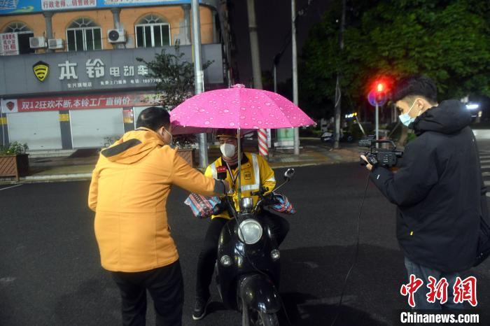 黄如东在送外卖途中接受中新网记者采访。 蒋雪林 摄