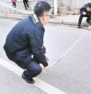 江岸区交通大队秩序管理中队民警前往现场进行实地测量。