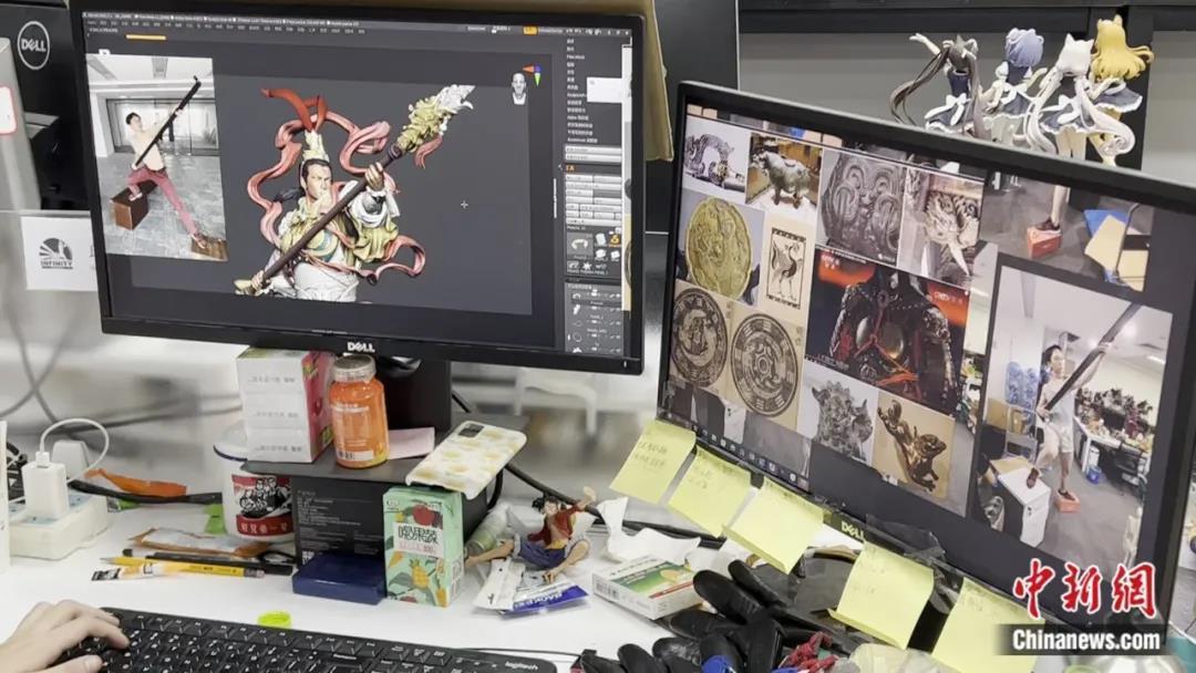 设计师根据真人动作修饰二郎神的细节 中新社 陈聪瑶摄