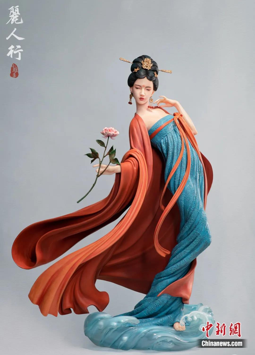 “丽人行“三个字是杜甫的一首诗的名字,诗的第一句就是“三月三日天气新,长安水边多丽人。”开天的《丽人行》,用雕像神还原了杜甫诗里的倾城佳人。