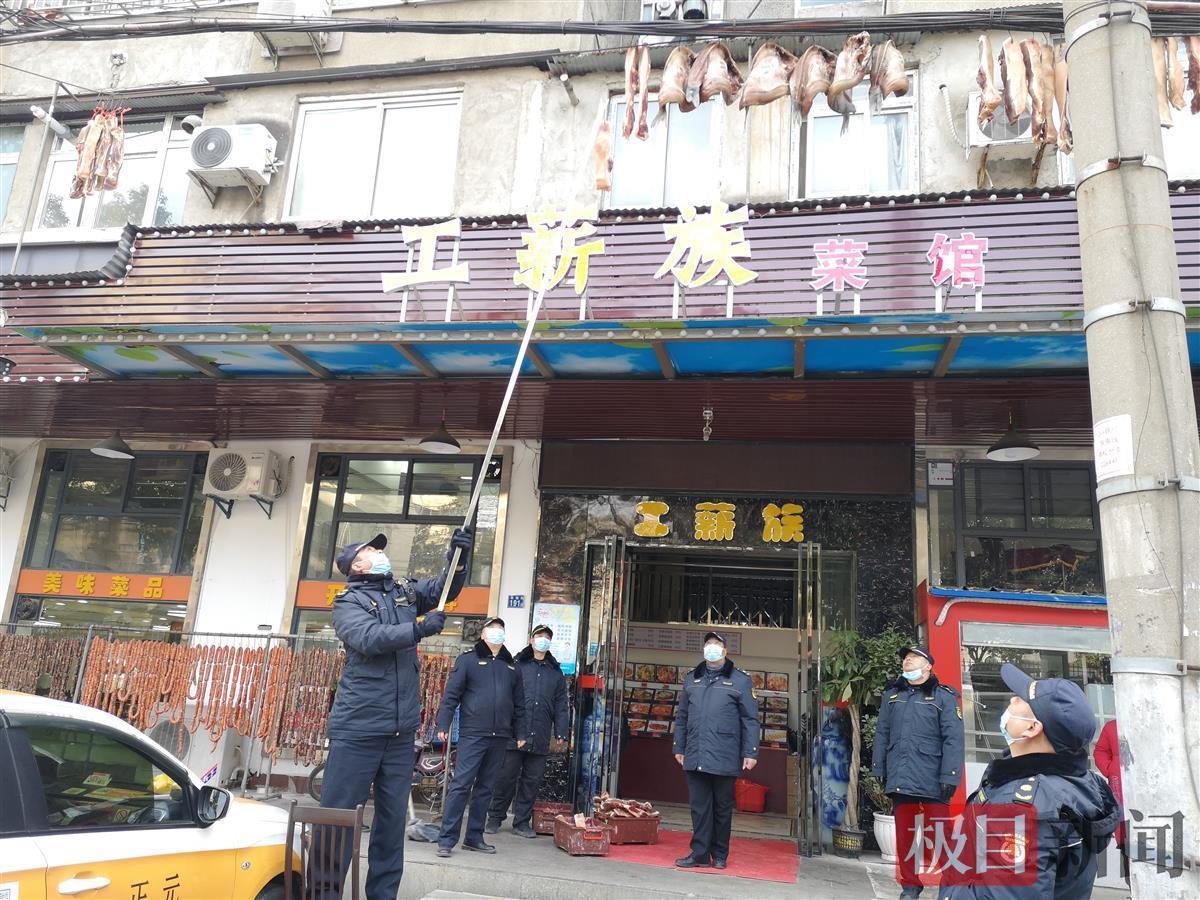 “该餐馆在毫无安全措施的情况下,私自使用铁钩将腊鱼腊肉悬挂在电线上,不仅违反了《武汉市市容环境卫生管理条例》,还存在严重安全隐患,铁钩极易破坏电线表面的绝缘层造成漏电,对过往行人及周边居民人身安全产生威胁。”向蓉群说,对该餐馆负责人进行批评教育,并责令改正。