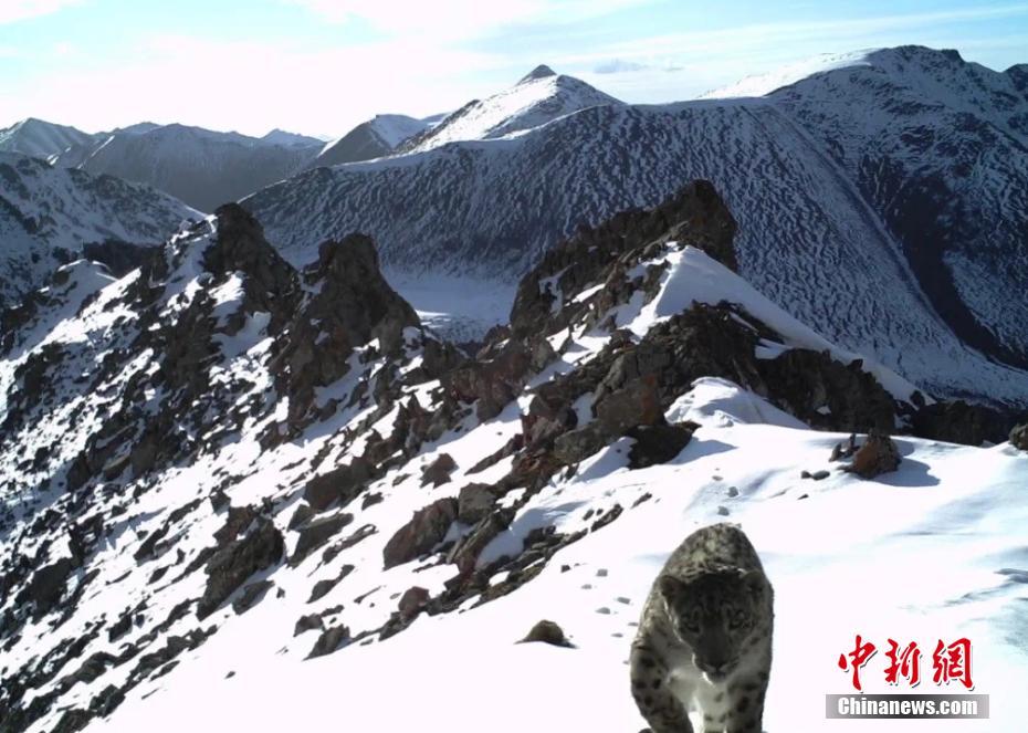 日前,青海大通北川河源区国家级自然保护区管理局从取回的红外相机中,首次在东峡区域发现国家一级保护动物雪豹和荒漠猫;国家二级保护动物藏雪鸡、马鹿、岩羊、赤狐等。同时,大通北川河源区国家级自然保护区管理局宝库管护中心工作人员在黑泉水库周边巡护过程中,首次在该区域记录到荒漠猫,并首次拍摄到该物种正面清晰照片和视频影像。图为红外相机在大通北川河源区国家级自然保护区东峡区域拍摄到的雪豹。 大通北川河源区国家级自然保护区管理局供图