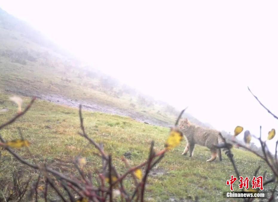 图为红外相机在大通北川河源区国家级自然保护区东峡区域拍摄到的荒漠猫。 大通北川河源区国家级自然保护区管理局供图
