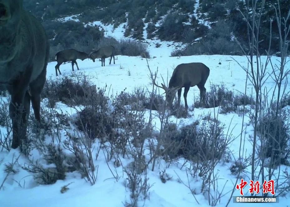 图为红外相机在大通北川河源区国家级自然保护区东峡区域拍摄到的马鹿。 大通北川河源区国家级自然保护区管理局供图