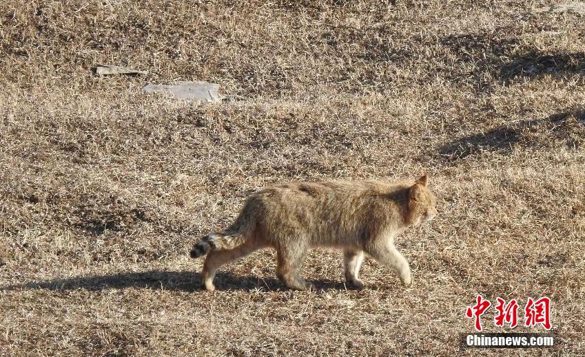 图为大通北川河源区国家级自然保护区管理局宝库管护中心工作人员拍摄到的荒漠猫。 大通北川河源区国家级自然保护区管理局供图