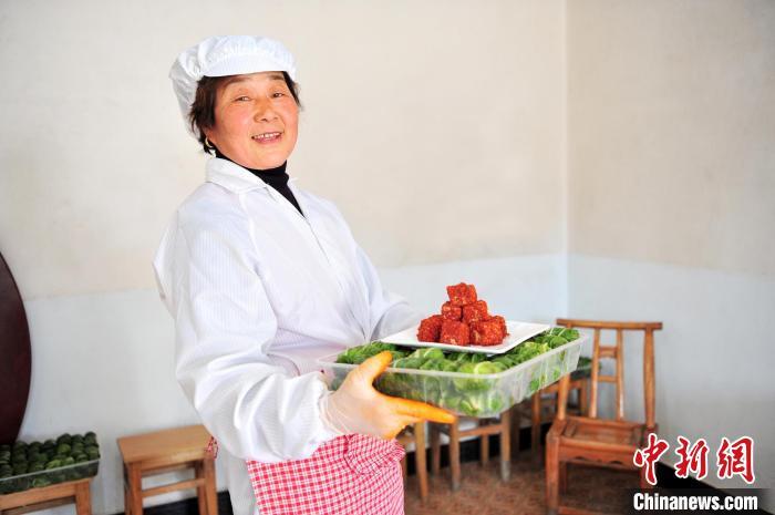 中新网宜昌12月29日电(郭晓莹 张国荣 李重庆)腊月即将到来,湖北省宜昌市夷陵区邓村乡茶农趁着农闲加工生产白菜豆腐乳。他们将豆腐泡酒、裹辣椒面,包裹白菜叶一系列手工程序后装坛发酵。这一方方腐乳,能给全村带来数千万元的收入。