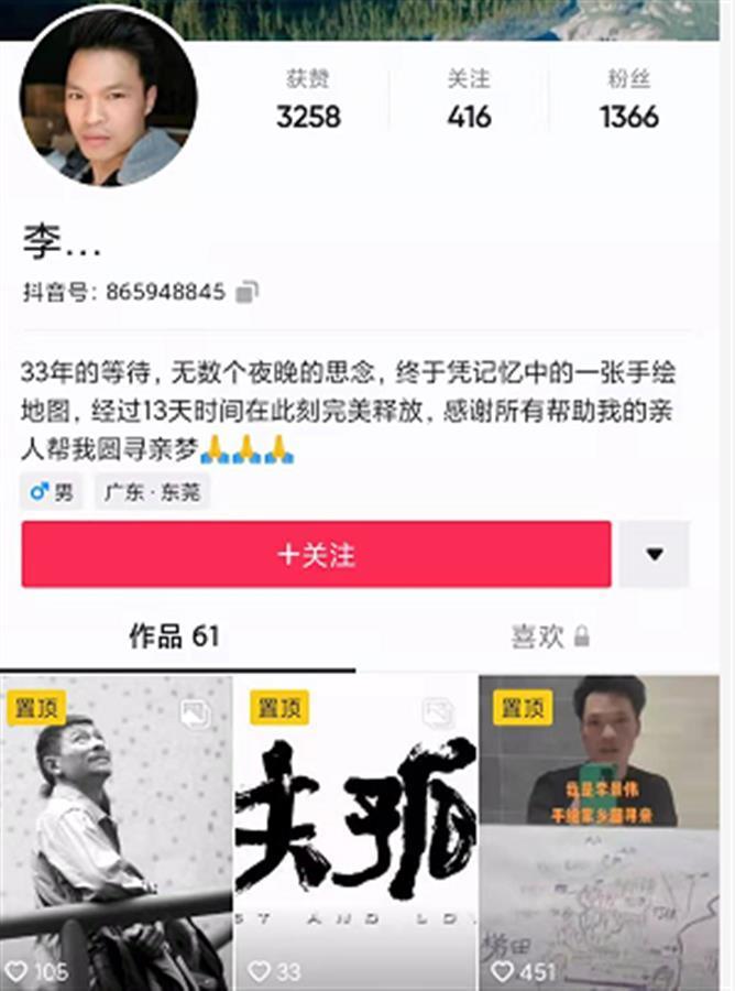 28日,河南警方告诉李景伟,DNA比对成功,恭喜他终于找到亲人。同时,公安部刑侦局打拐办在其官方抖音号上发布视频,祝贺手绘家乡地图寻亲的李景伟终于寻亲成功,团圆行动也将再次迎来团圆时刻。