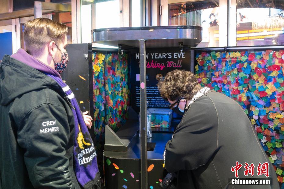 当地时间12月29日,美国纽约,民众在时报广场流动许愿墙前写下新年愿望。作为纽约市的迎新传统,时报广场许愿墙活动提供给民众在彩色纸屑上书写心愿的机会。在跨年夜活动上,当零点到来时,伴随彩色水晶球的降落,数千万张写满民众心愿的彩色纸屑将从时报广场高空撒下。 中新社记者 王帆 摄