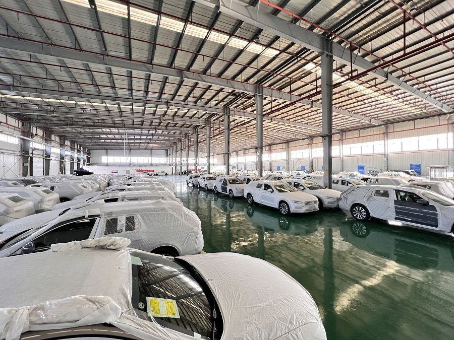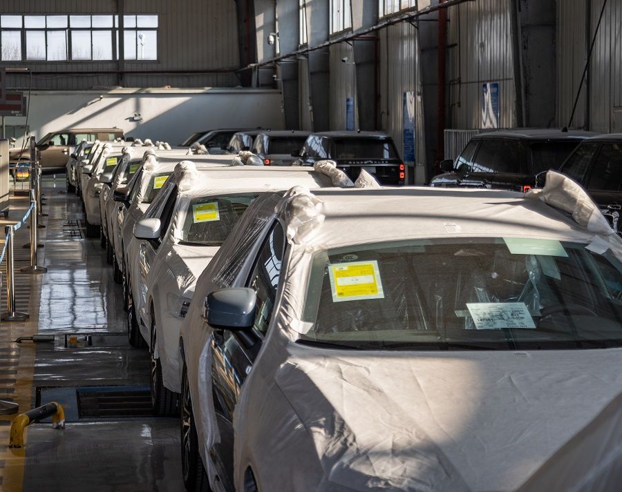 检测区内等候检测的进口整车。通讯员徐一帆 摄