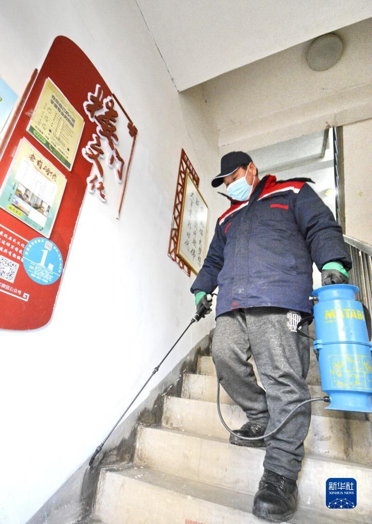 12月30日,病媒防治技术人员在十里堡社区的居民楼内进行灭蟑工作。