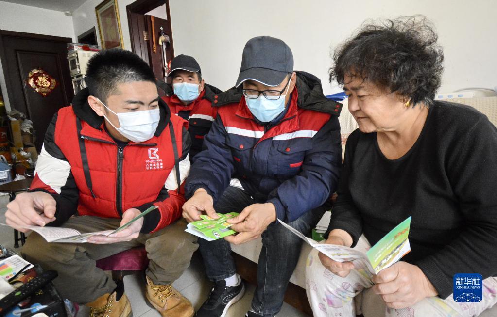 12月30日,在十里堡社区居民(右一)家中,社区工作者(左一)和病媒防治技术人员进行灭蟑方法指导。