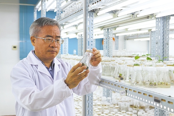 “省特级专家”张献龙在实验室内培育棉花新品种。 (通讯员 杨细燕 摄)