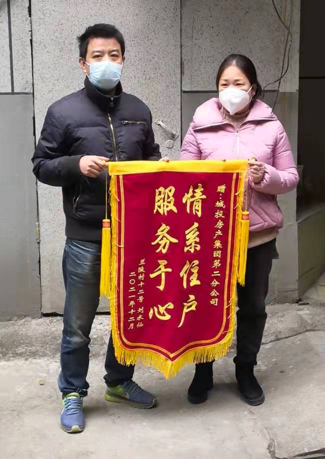 长江日报大武汉客户端12月31日讯(记者丁傲岸 通讯员刘宏)“感谢你们抢修水管,及时为我家和社区解决问题。”12月29日,兰陵村12号三楼住户刘女士将一面印有“情系用户,服务于心”八个字的锦旗送至武汉城投房产集团第二分公司,并对该公司的“房管家”积极为民办实事表示称赞。