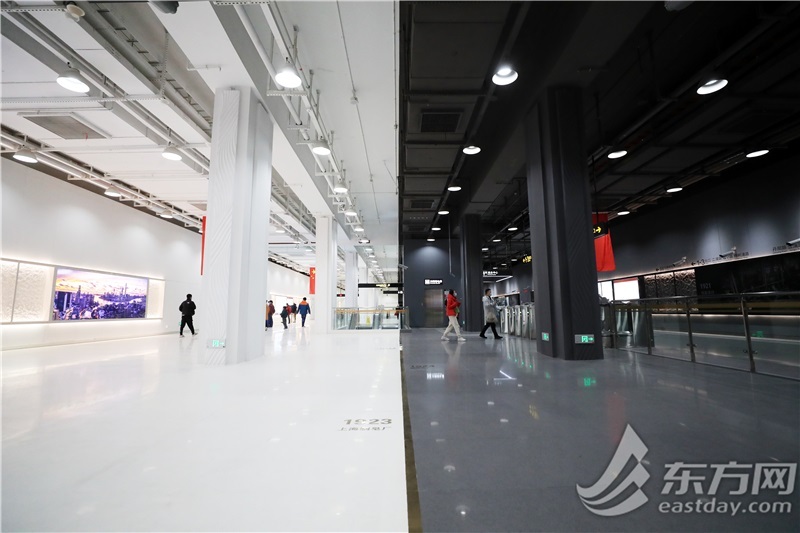 地铁18号线丹阳路站位于杨浦滨江,通过各种细节,展示着杨浦滨江从“工业锈带”到“生活秀带”的变迁史。丹阳路站在同一空间反色色系共存,站名墙两侧一黑一白,代表了“今”与“昔”,一边展示着杨浦滨江的多彩风貌,另一边是黑底照片。拿起手机或相机以从右往左的角度拍摄,就可看到以往杨浦滨江附近的丹阳路旧址。