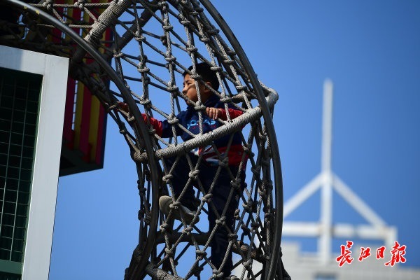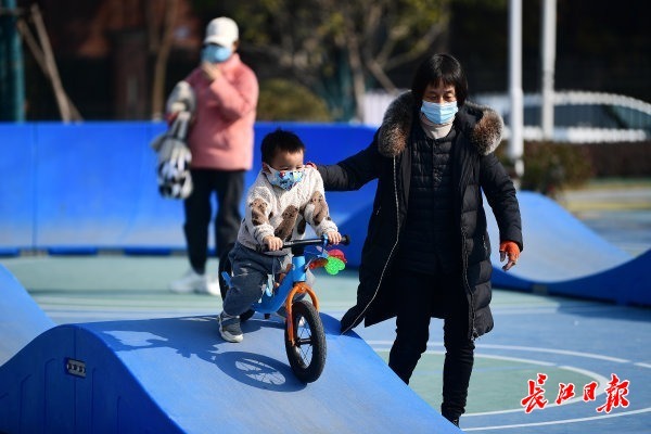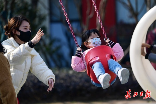 长江日报大武汉客户端1月3日讯 3日,武汉市天气晴好,一些市民带着家人来到户外休闲运动,享受暖阳照耀的元旦小长假。在张之洞体育公园里,小朋友在家长的陪伴下荡秋千、滑滑梯、挖沙子,快乐玩耍,不亦乐乎。