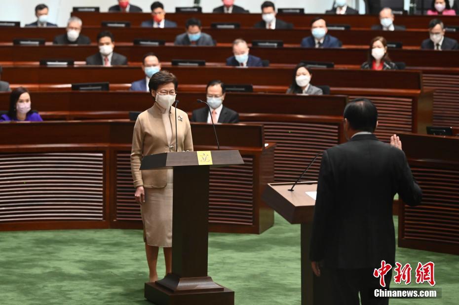 1月3日上午,香港特区行政长官林郑月娥在立法会综合大楼会议厅为第七届立法会议员监誓。 中新社记者 李志华 摄