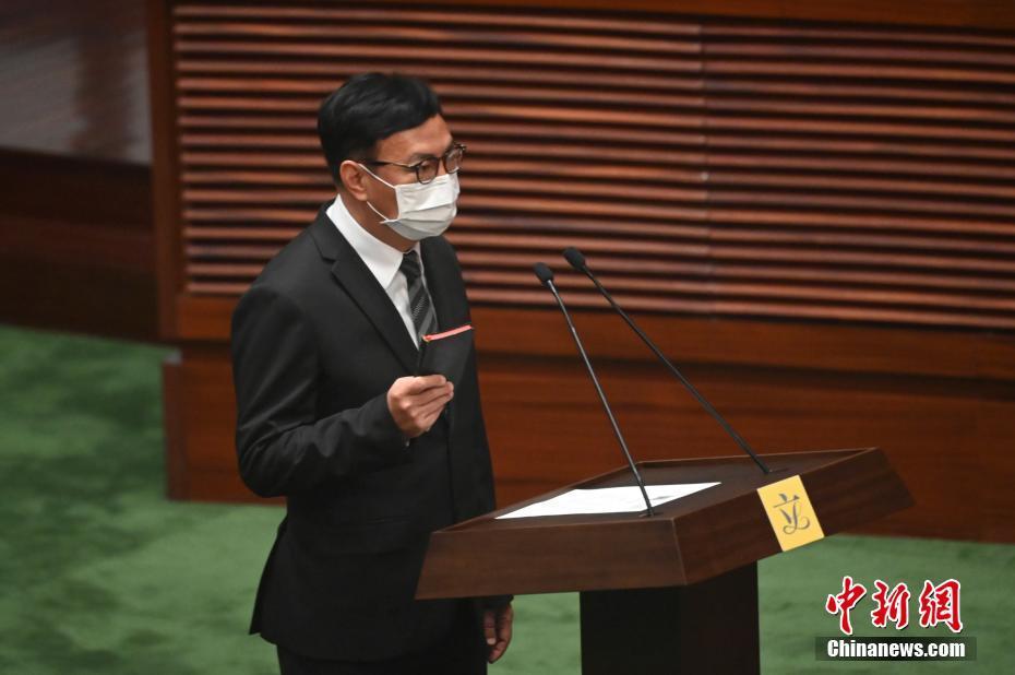 1月3日上午,香港特区政府在立法会综合大楼会议厅举行第七届立法会议员的宣誓仪式,孙东、谭岳衡、周文港以普通话宣誓。图为周文港以普通话进行宣誓。 中新社记者 李志华 摄