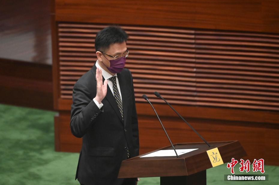1月3日上午,香港特区政府在立法会综合大楼会议厅举行第七届立法会议员的宣誓仪式。图为张欣宇进行宣誓。 中新社记者 李志华 摄
