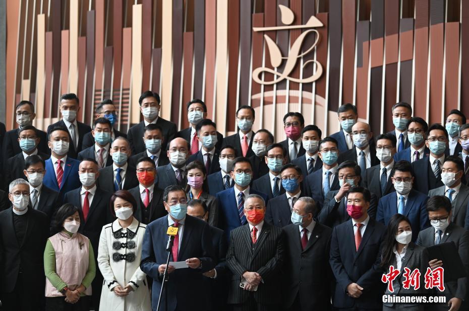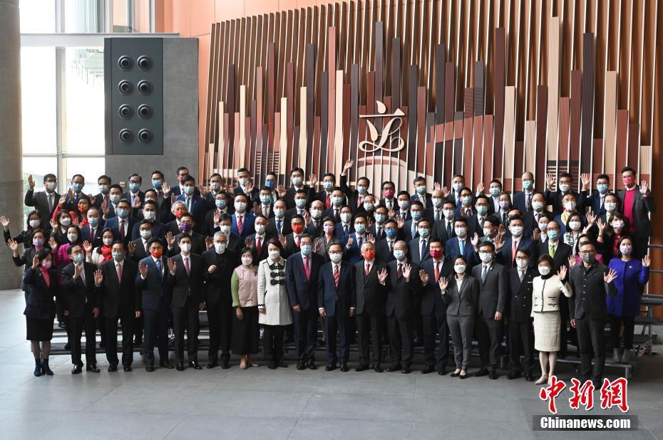 1月3日中午,香港特区第七届立法会议员完成宣誓后合照。 中新社记者 李志华 摄